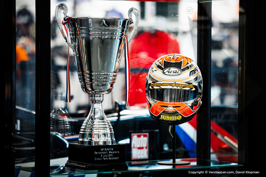 Visitors to the Max Verstappen Shop can, starting now – and in the next coming months – marvel at this iconic Zandvoort Masters car, together with the accompanying trophy, racing overalls, and helmet. It's a timely reminder of the moment that the motorsports world first became acquainted with Max Verstappen, the future four-time Formula 1 world champion.