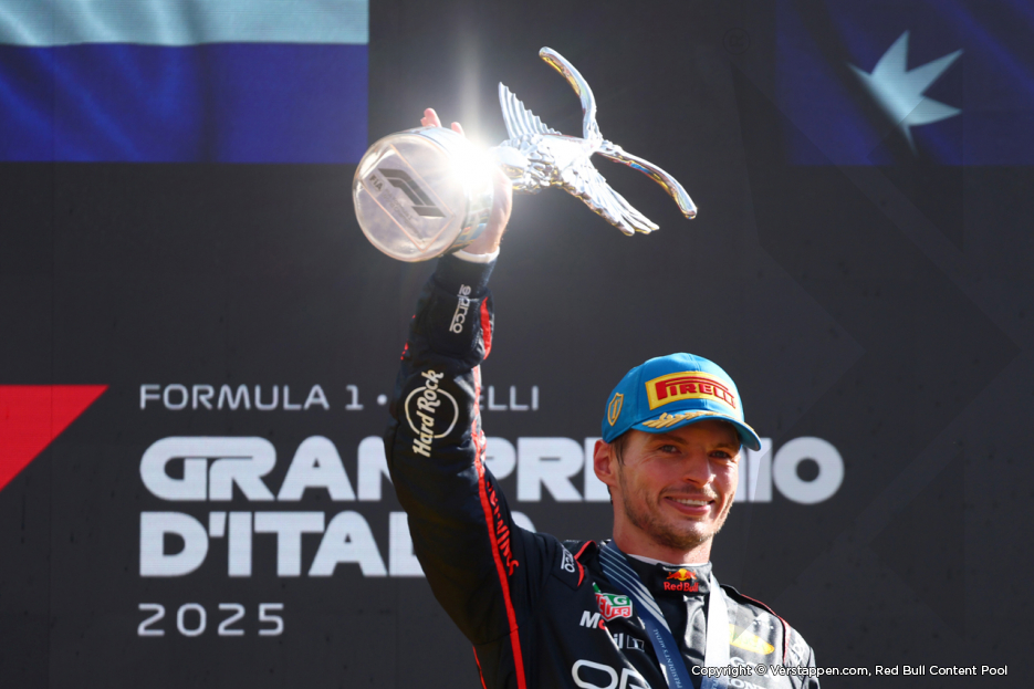 Related news 19w ago Max dominantly wins GP Italy: 'Fantastic execution by the whole team' 19w ago Max named Driver of the Day in Monza 19w ago Mekies after qualifying Italian GP: 'Max magic' 19w ago Max on pole in Monza: 'A fantastic moment for us'